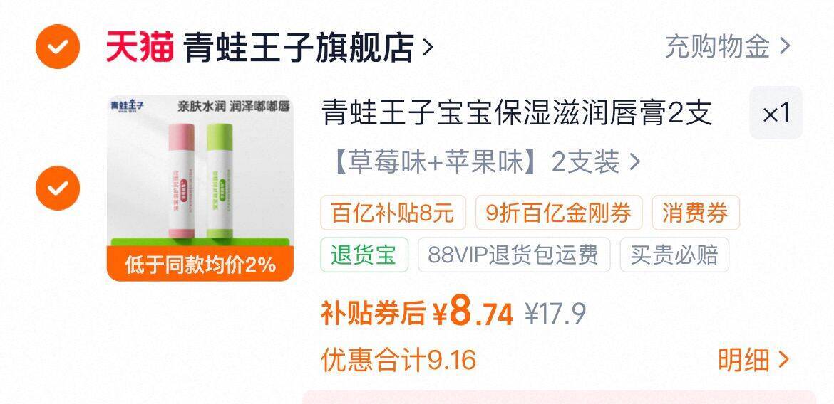 【青蛙王子】润唇膏2支