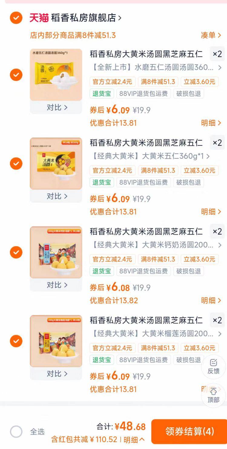 稻香私房汤圆任选8件48