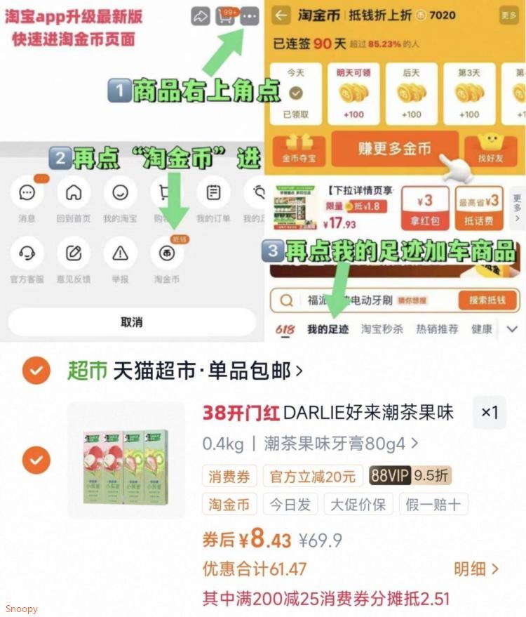 1.商品右上3个点,选淘金币