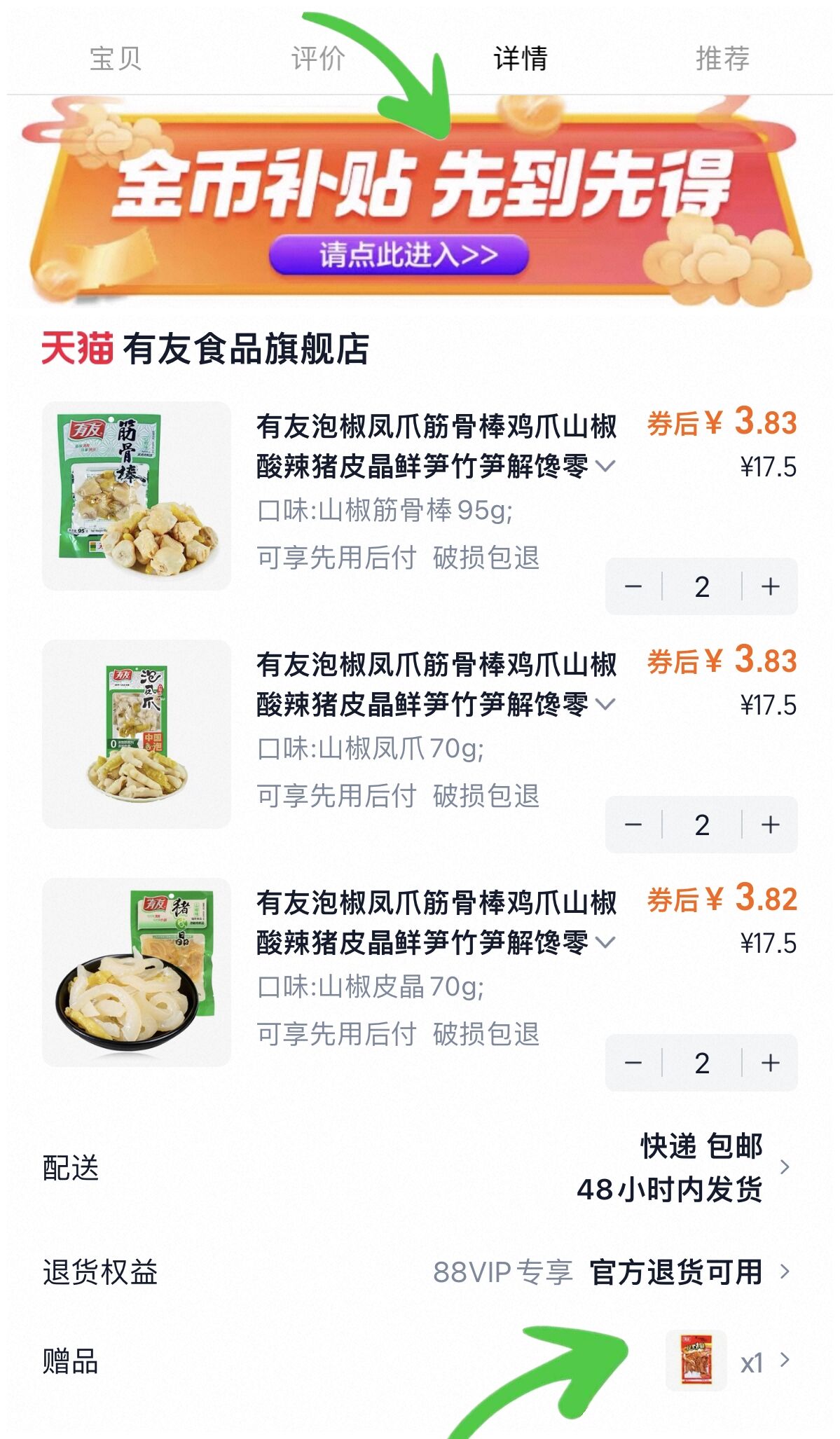 2、凑1件,用消费券