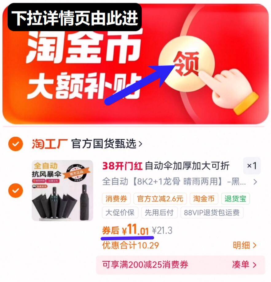 下拉详情页跳转淘金币拍
