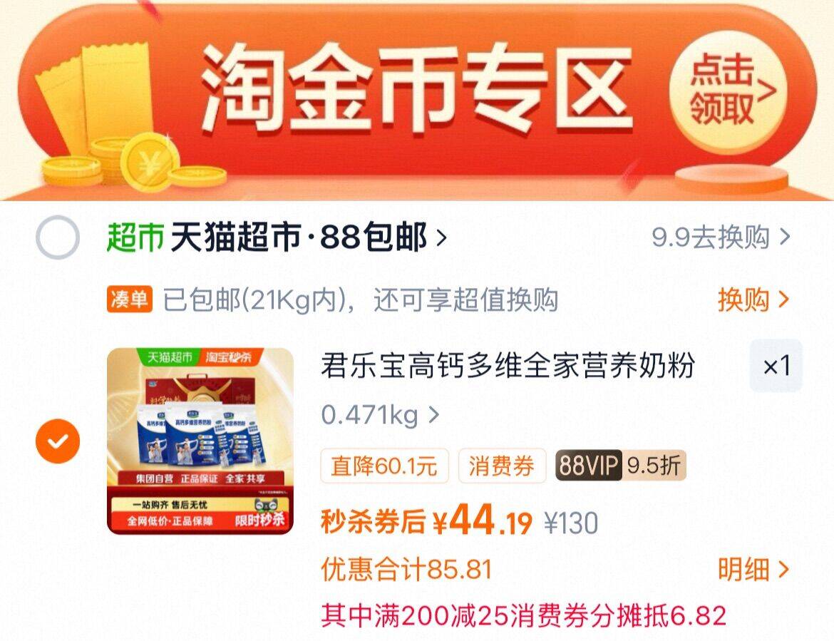 1、右上角“淘金币”加2件