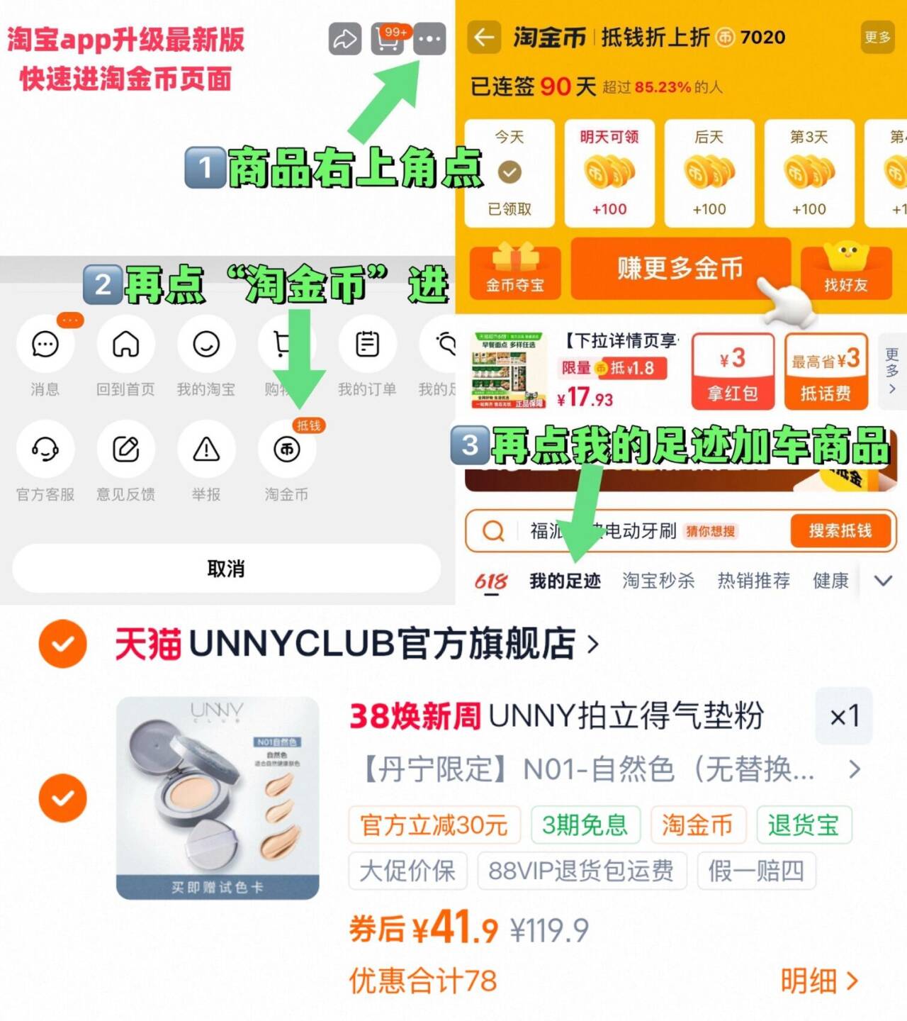 以下分别从淘金币加车,速