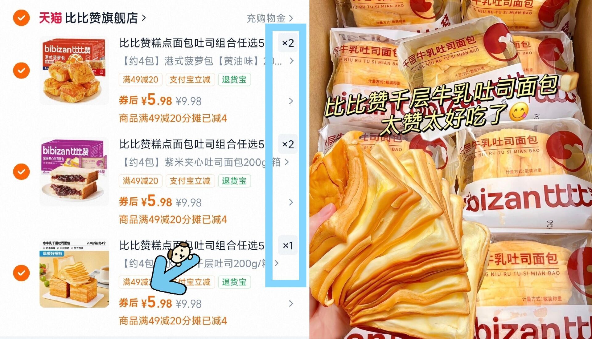 比比赞面包早餐糕点任选5件