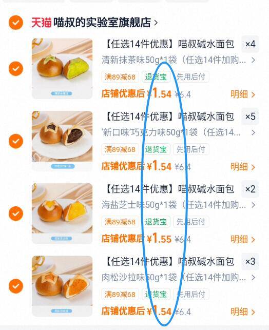 大牌面包好价!1块多/个