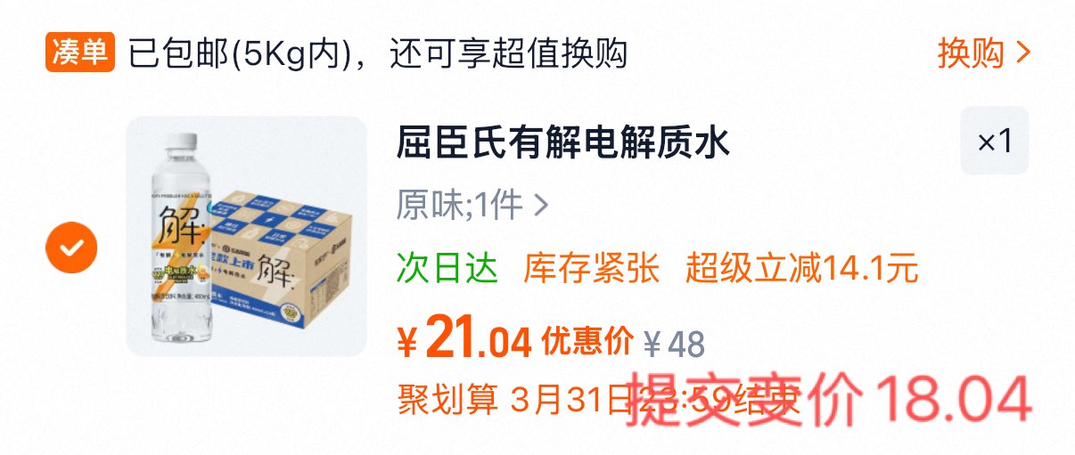 屈臣氏有解电解质水480ml*15瓶