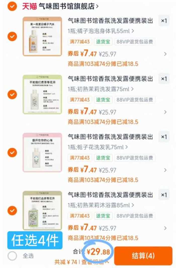 5件 任选5件 29.9亓