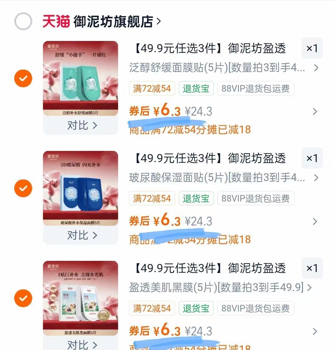 1/片御泥坊面膜神价