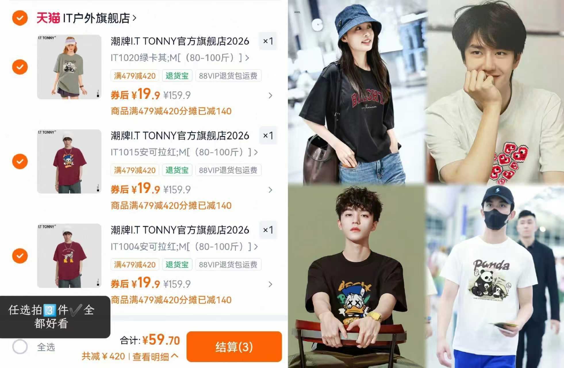 19.9/件I.T潮牌情侣短袖