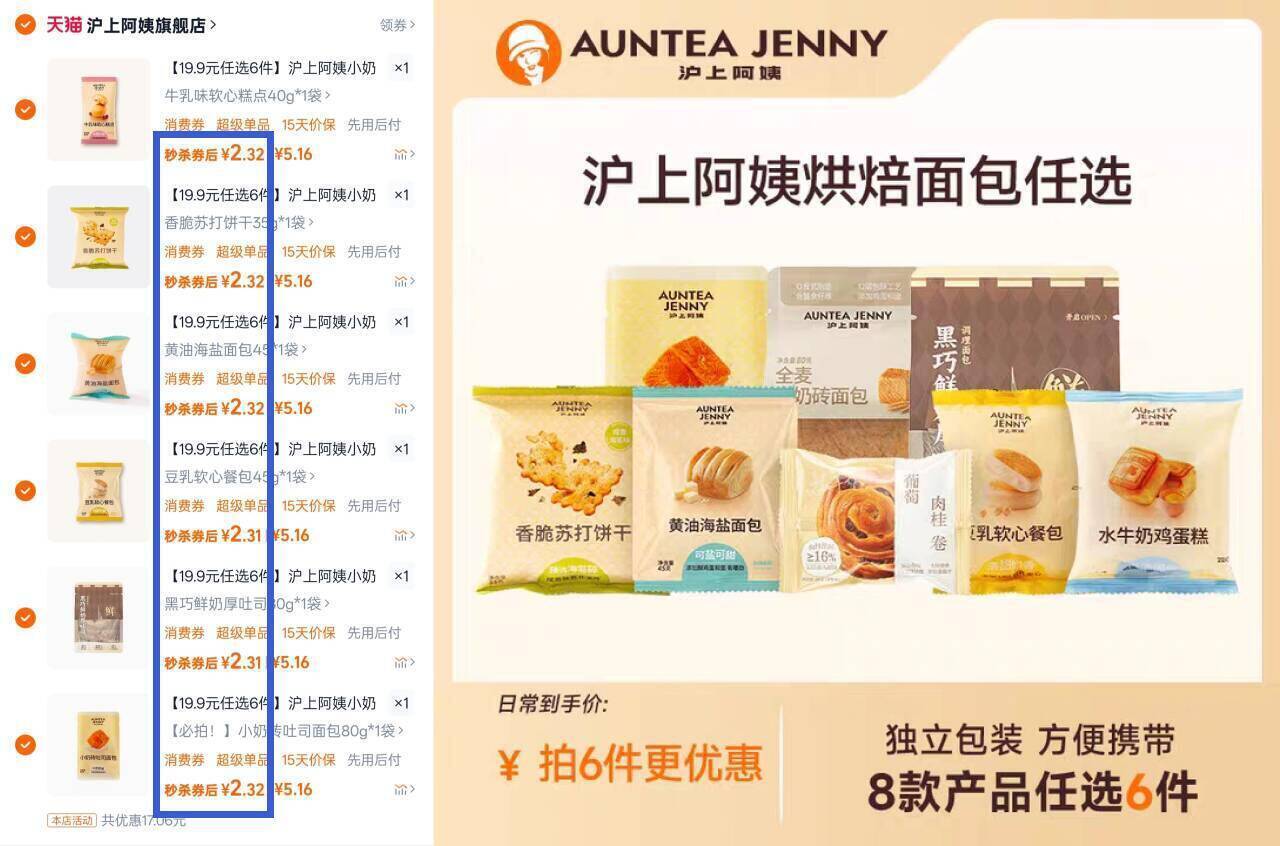 沪上阿姨面包蛋糕好价!