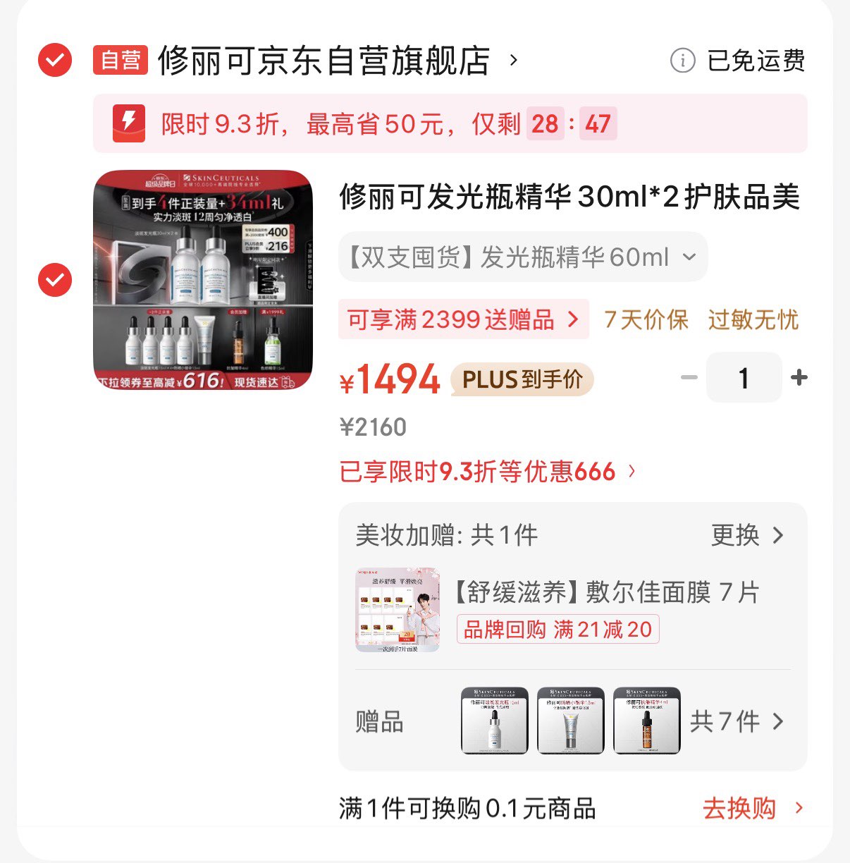 美妆加赠可选敷尔佳面膜7片