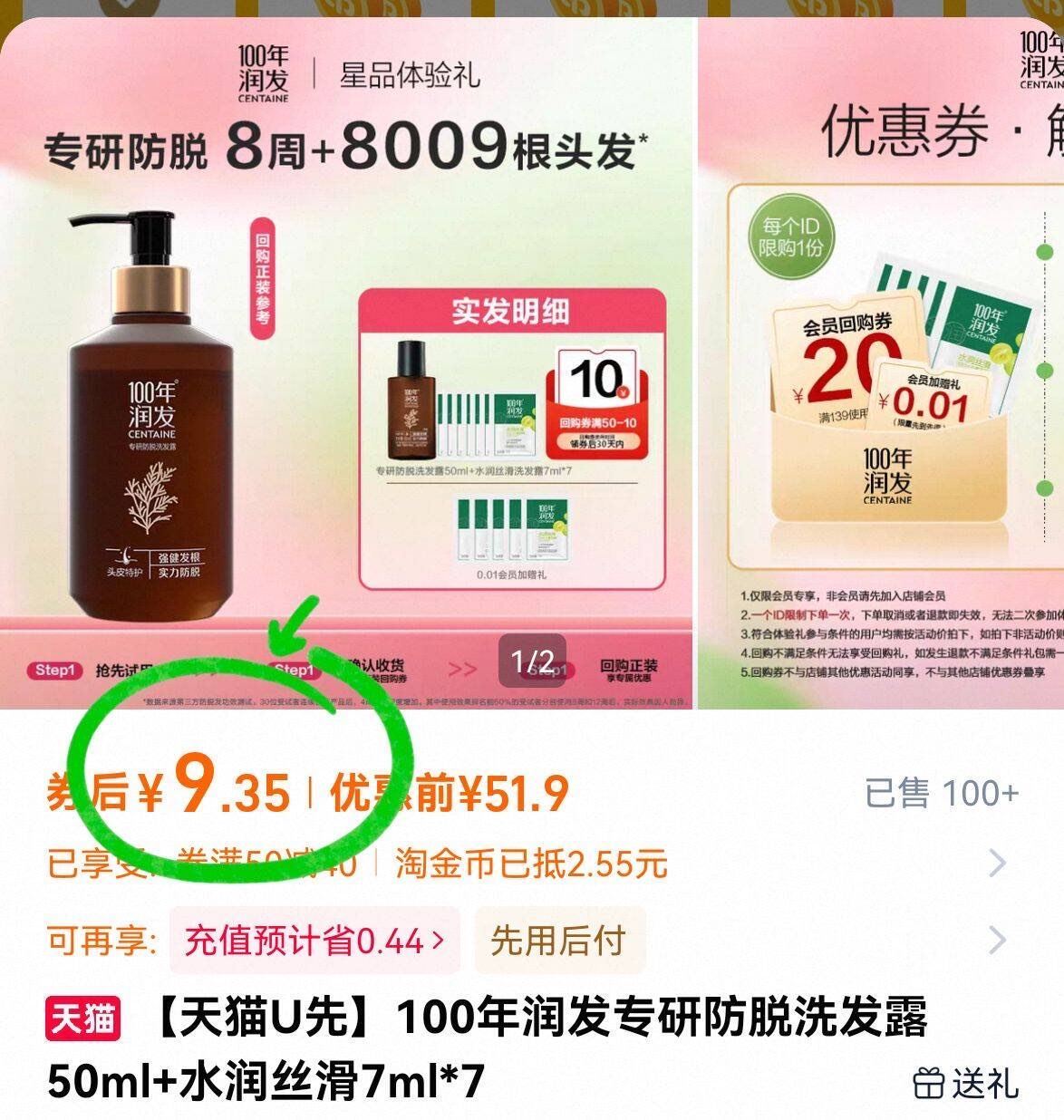 100年润发洗发露50ml