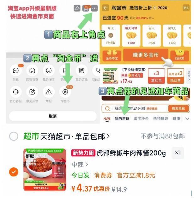 1.蔏品右上3个点,选淘金币