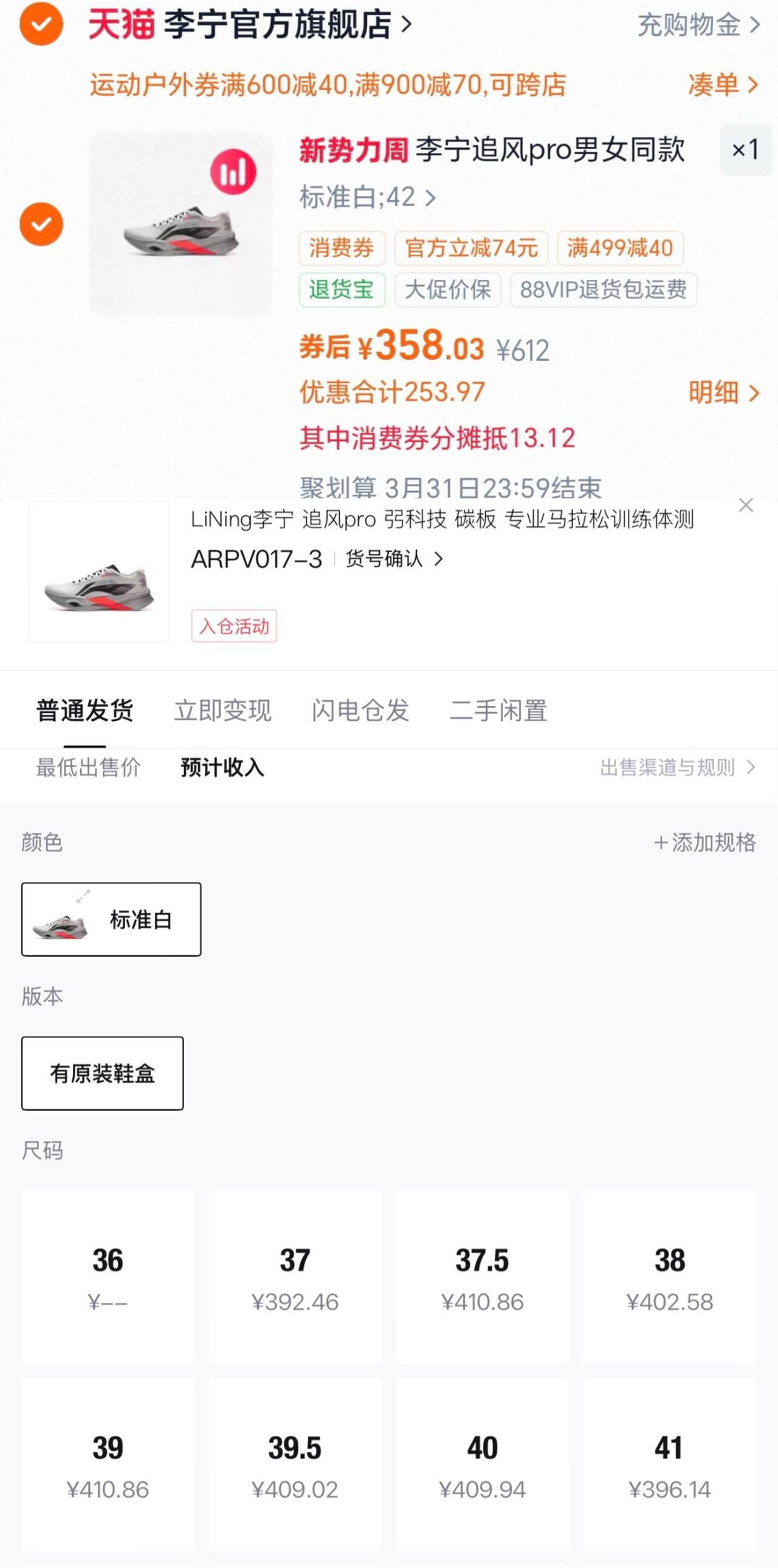 拉满 分别到手358、373