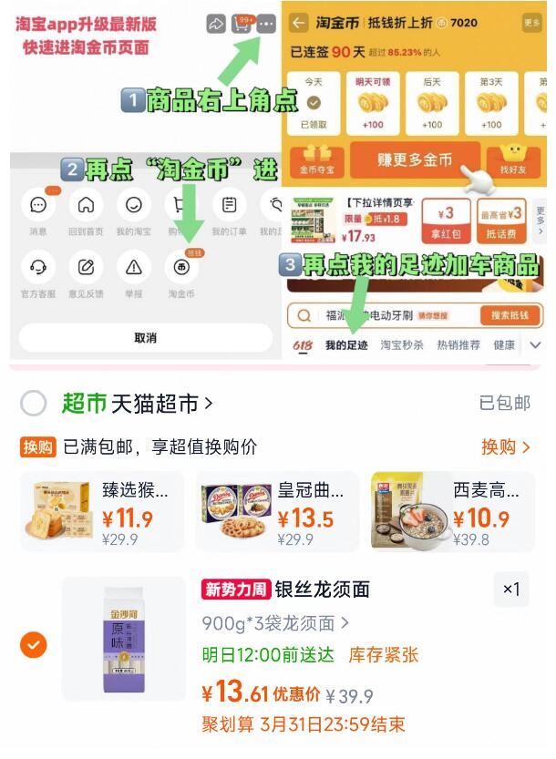 1.商品右上3个点,选淘金币