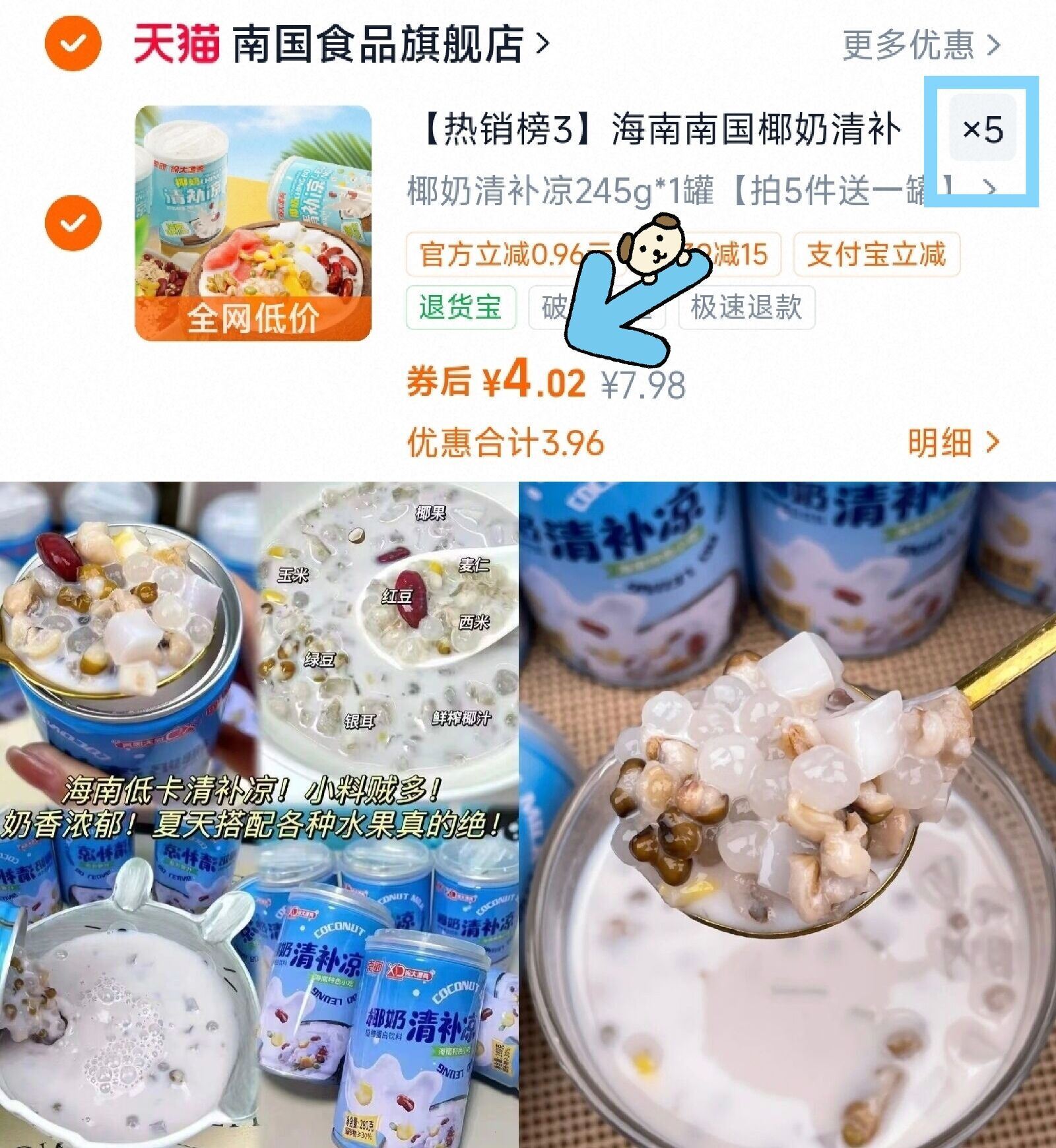 南国海南特产清补凉5瓶赠1瓶