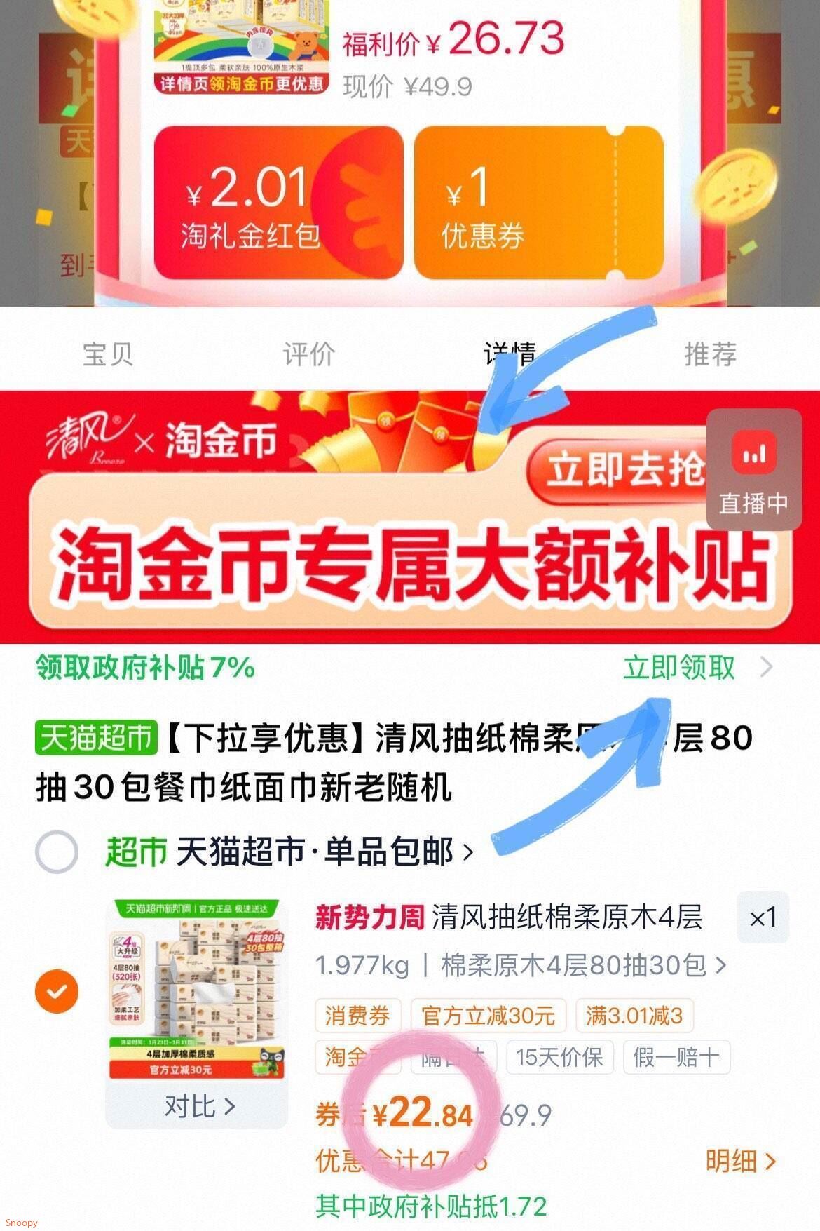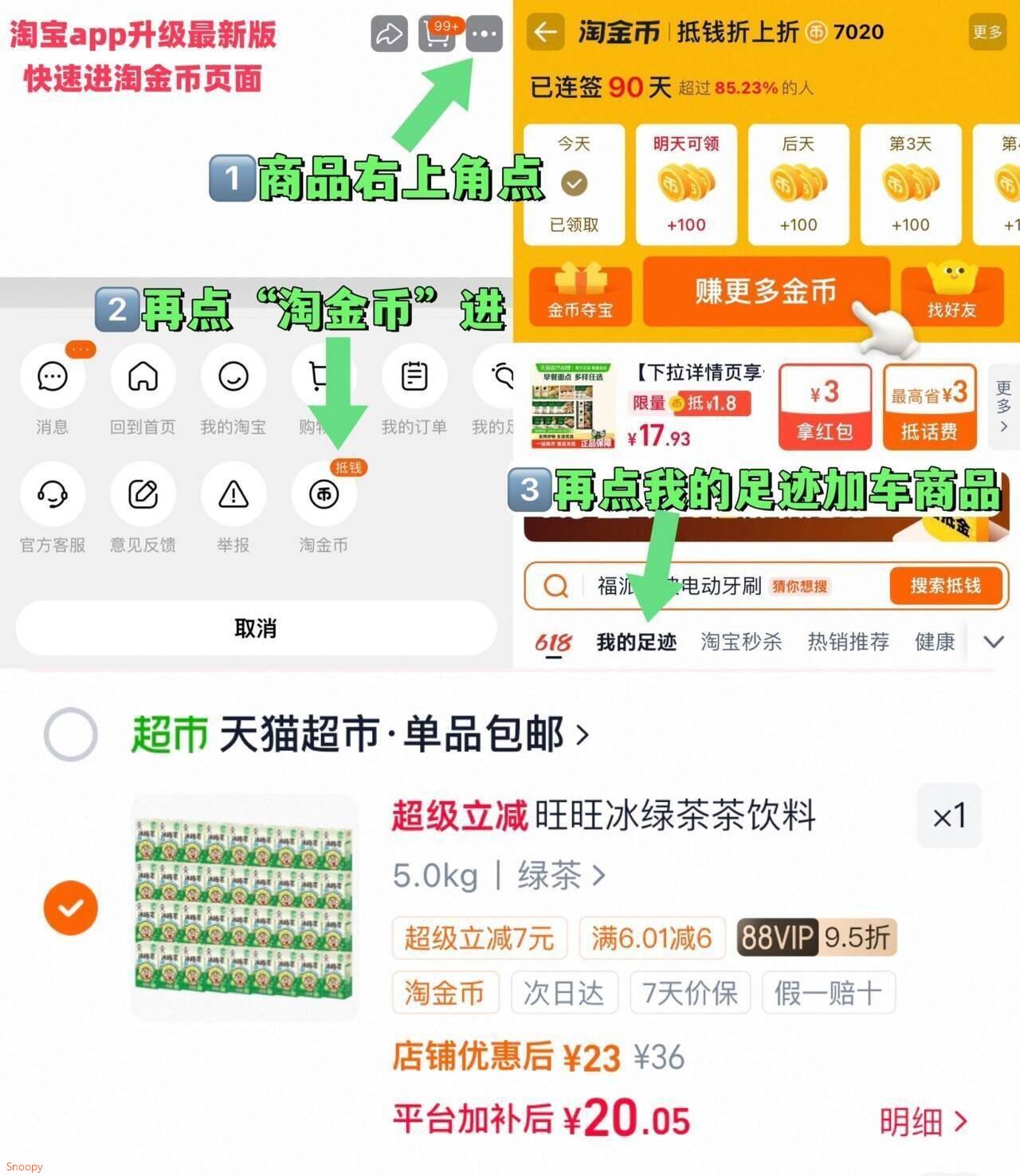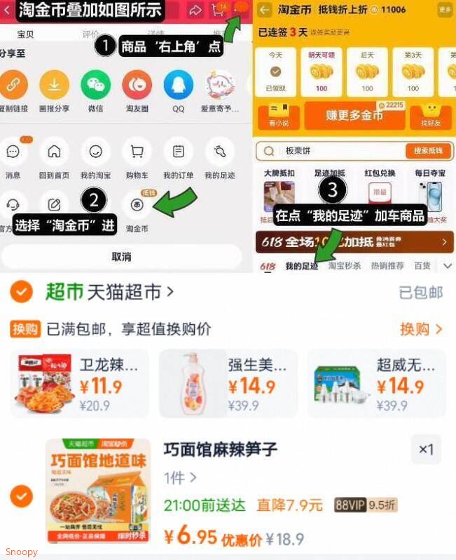 1.商品右上3个点,选淘金币