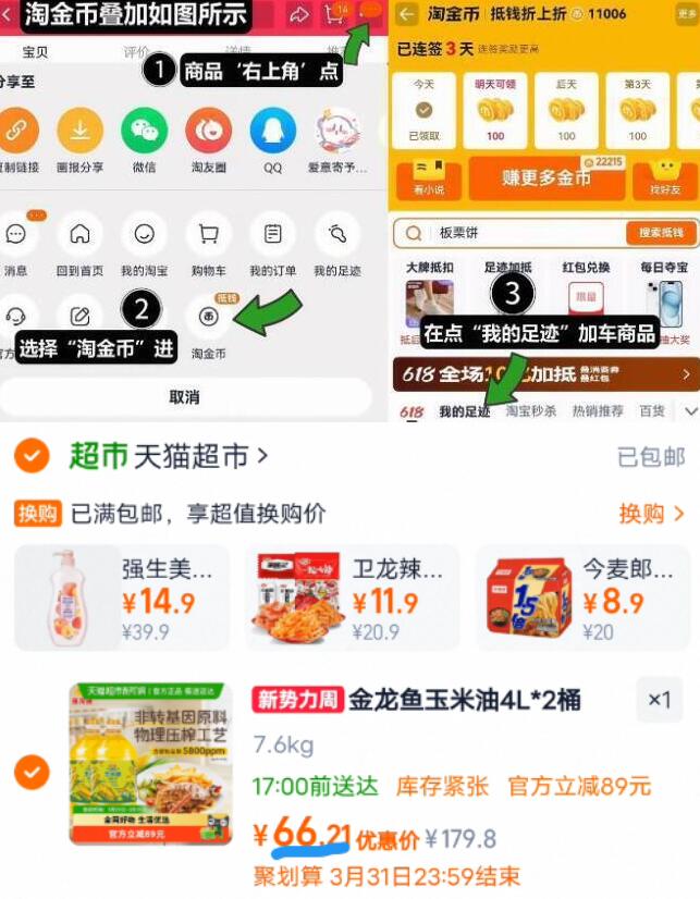 ①如图点右上角3个点,选淘金币