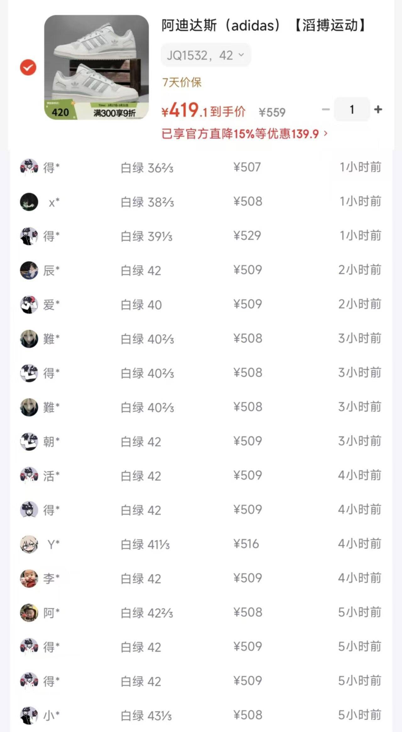 到手419 得物509