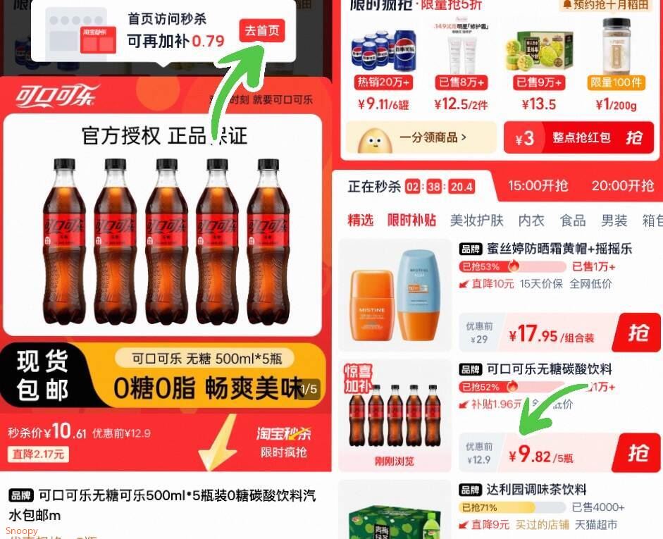 乐口可乐0糖碳酸饮料500ml*5瓶