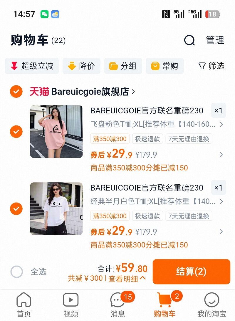 领300元店铺券!拍2件59.8