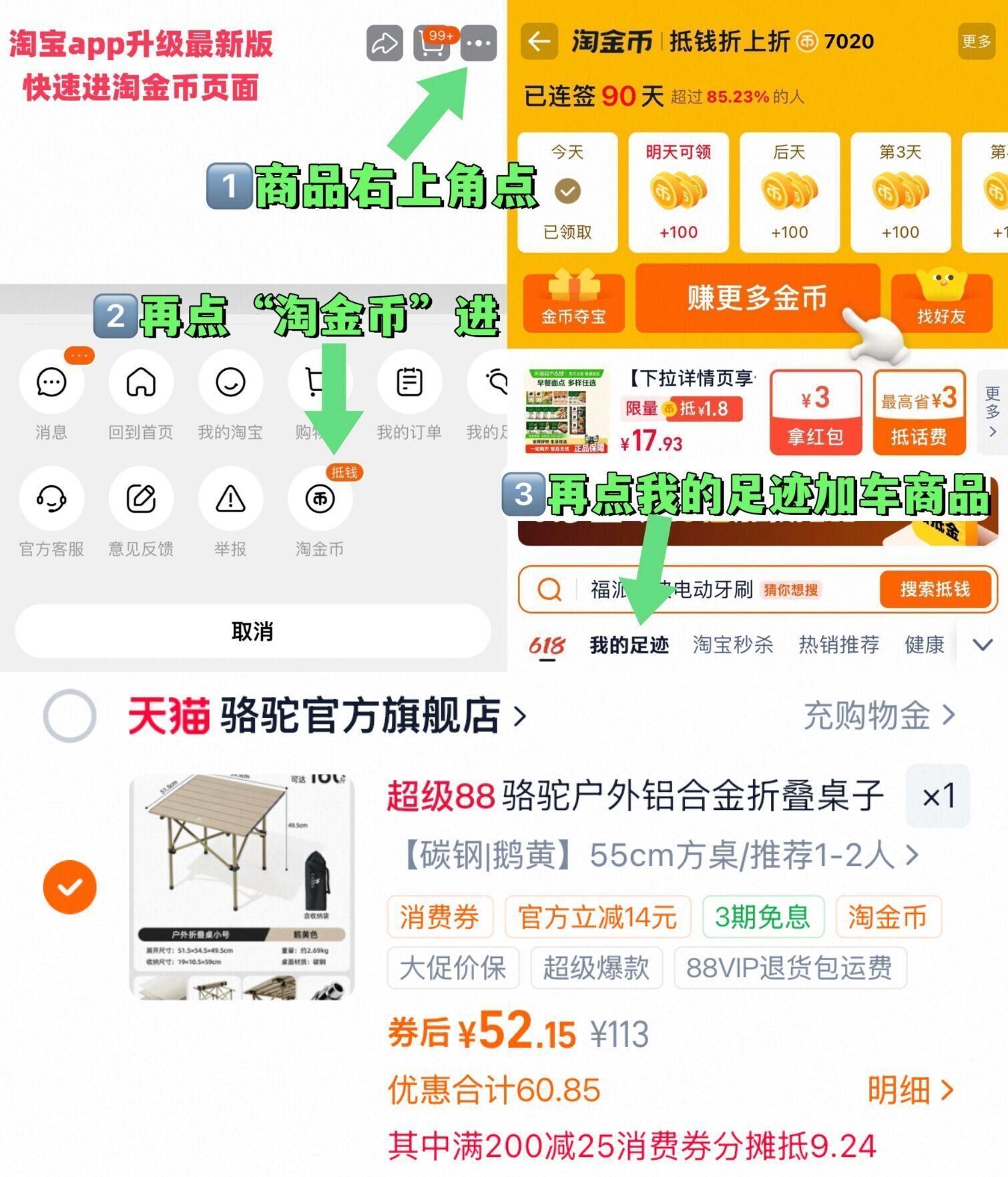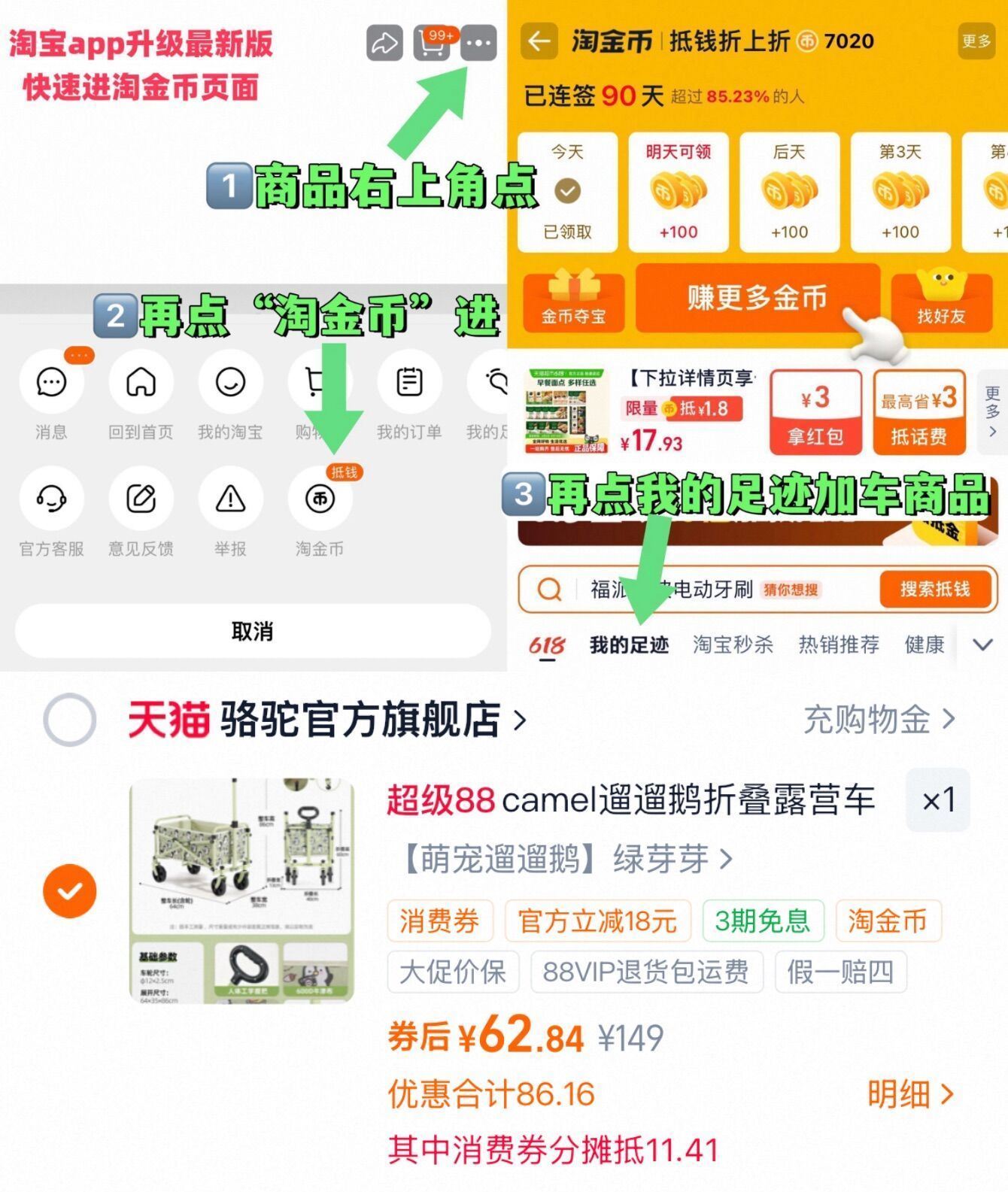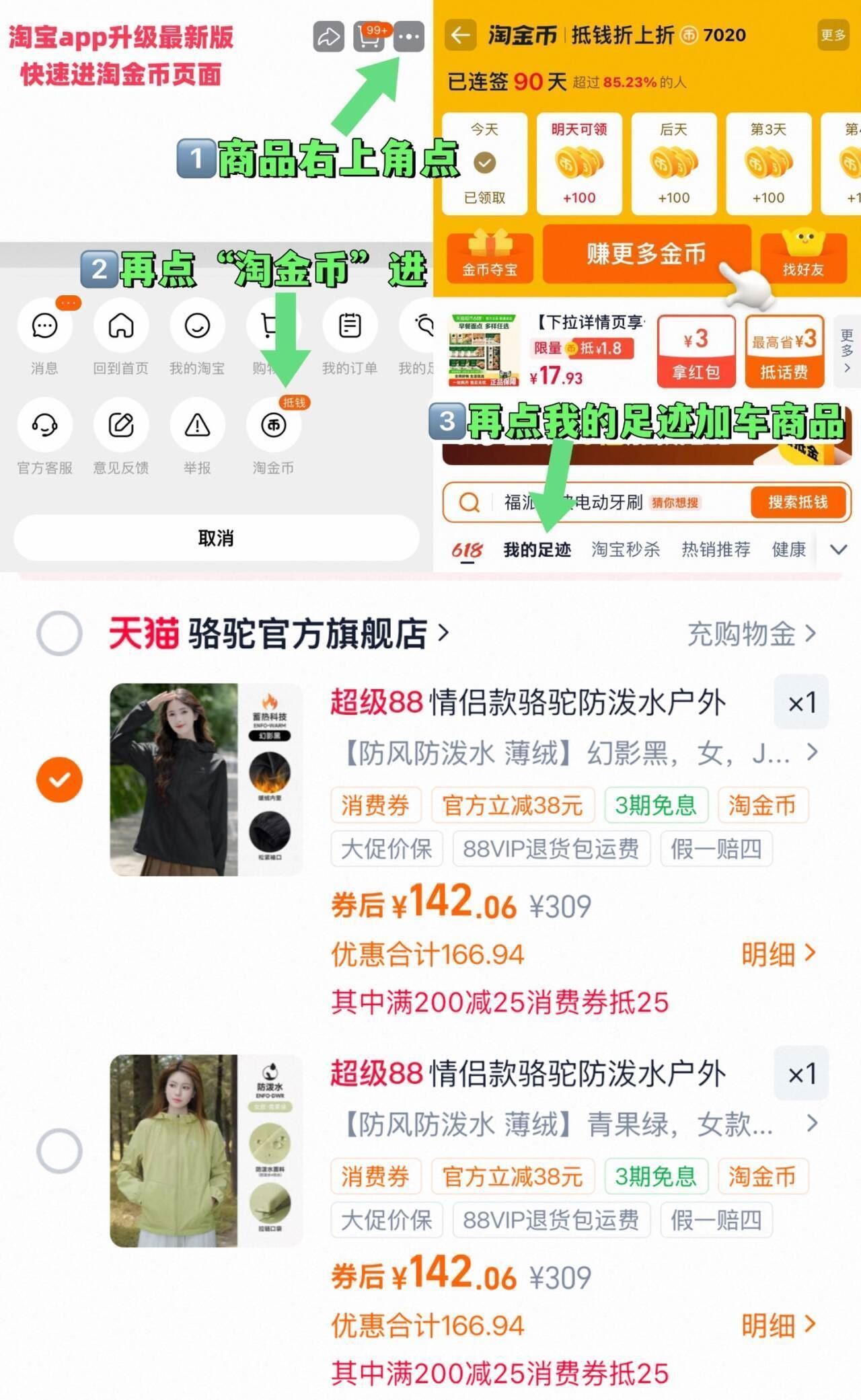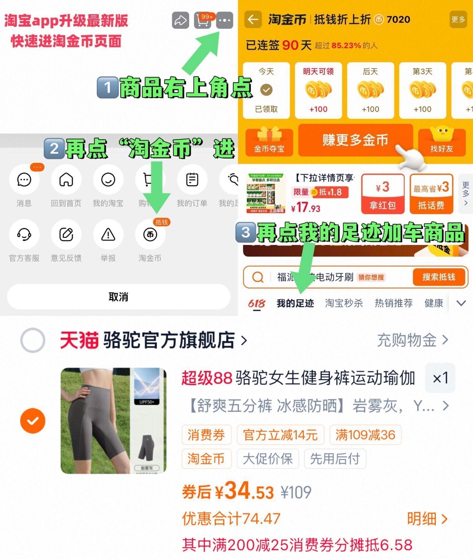 ①如图点右上角3个点,选淘金币