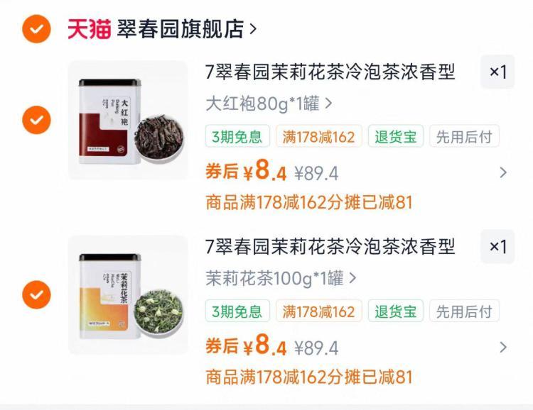 翠春园 茶叶任选100g*2罐