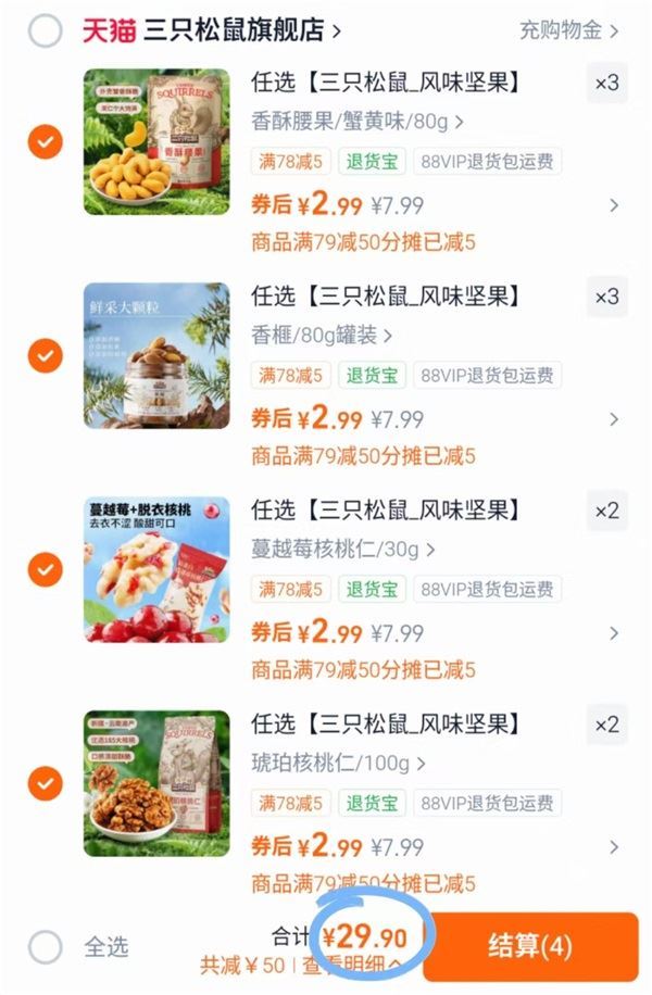 三只松鼠.零食 拍10件元29.9