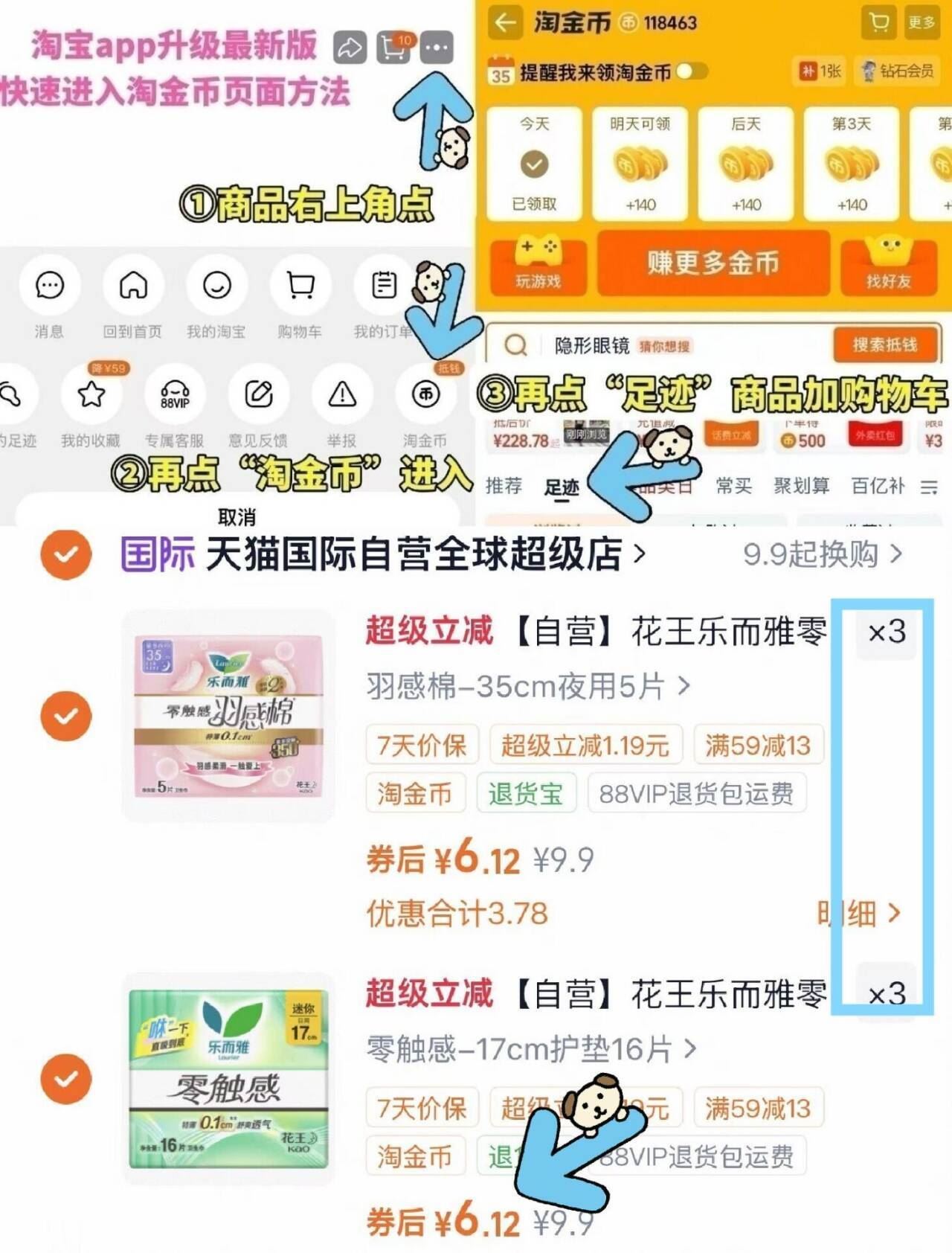 ①如图点右上角 选淘金币