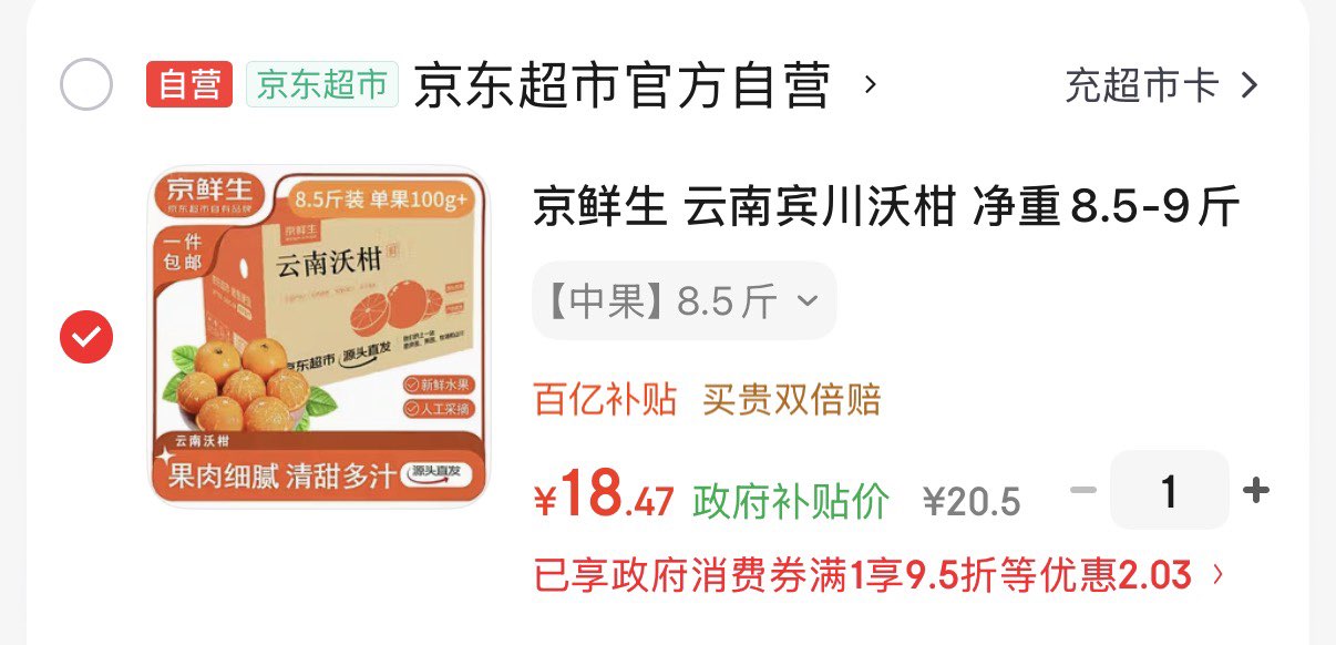 App 拍下18.5亓 云南沃柑净重8.5-9斤