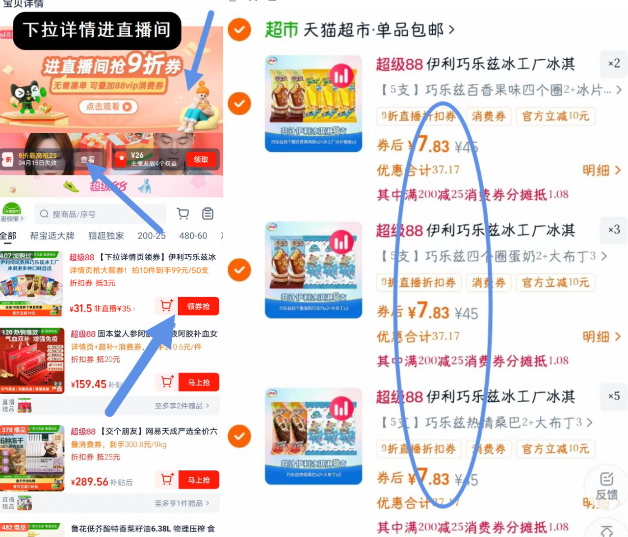 ③直播间找到商品加车1件