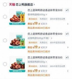 恋上鸭卤味500g元19.9亓