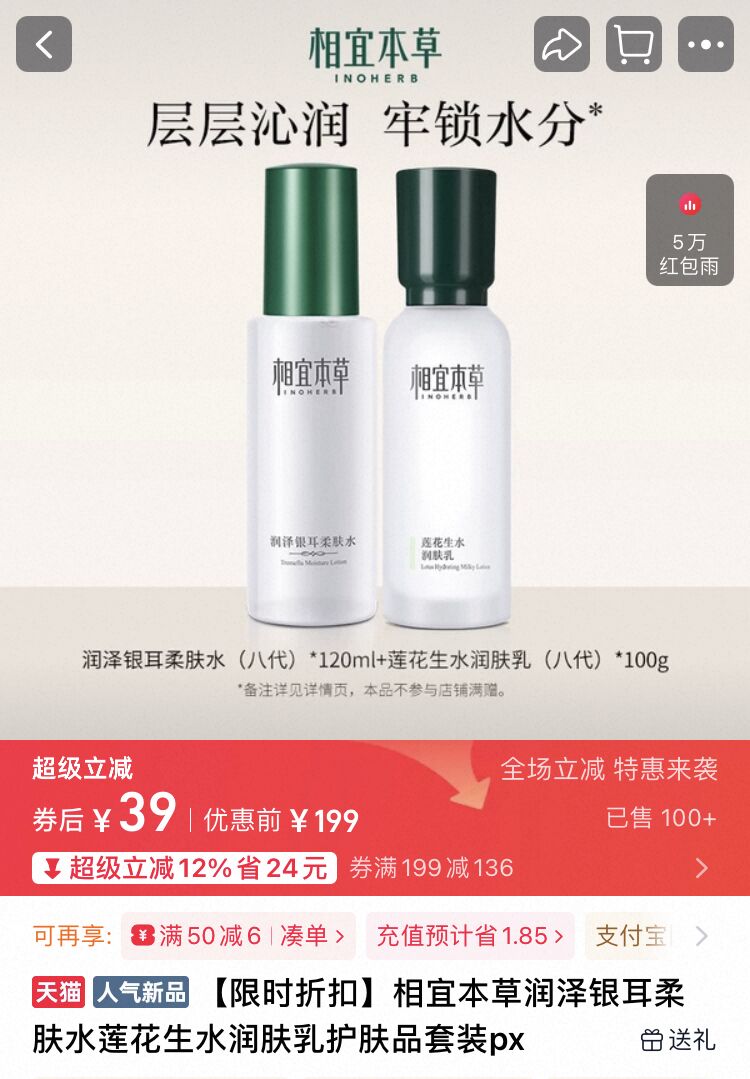 相宜本草.水乳正装2瓶元39亓