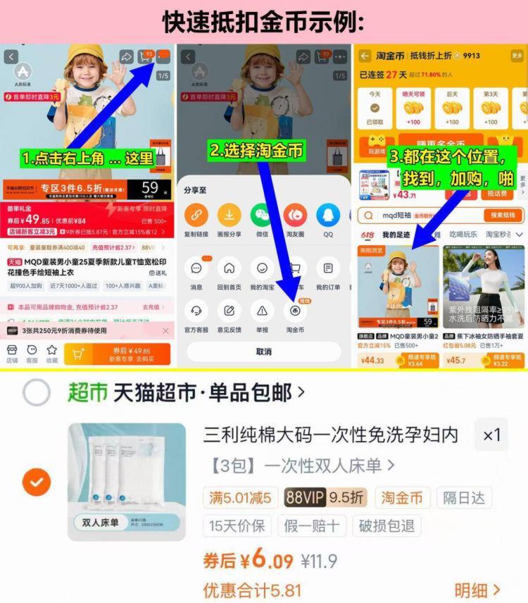 1.商品右上角3个点,选淘金币