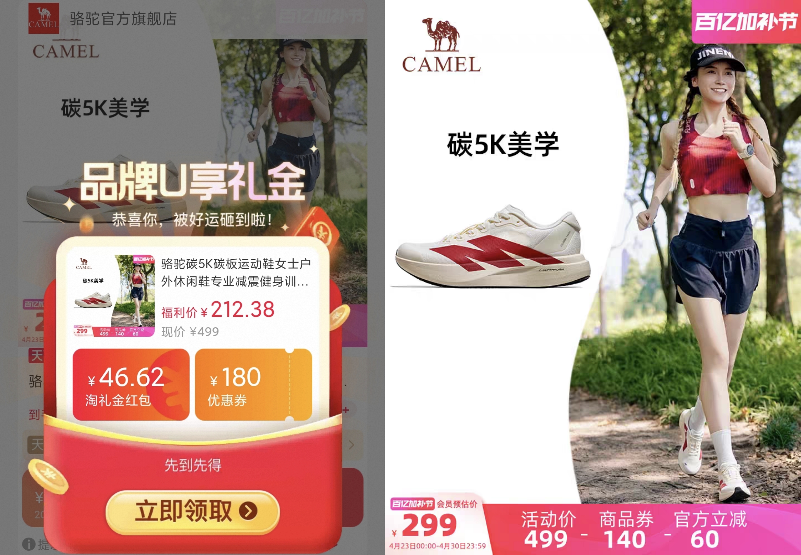 骆驼碳5K碳板运动鞋户外