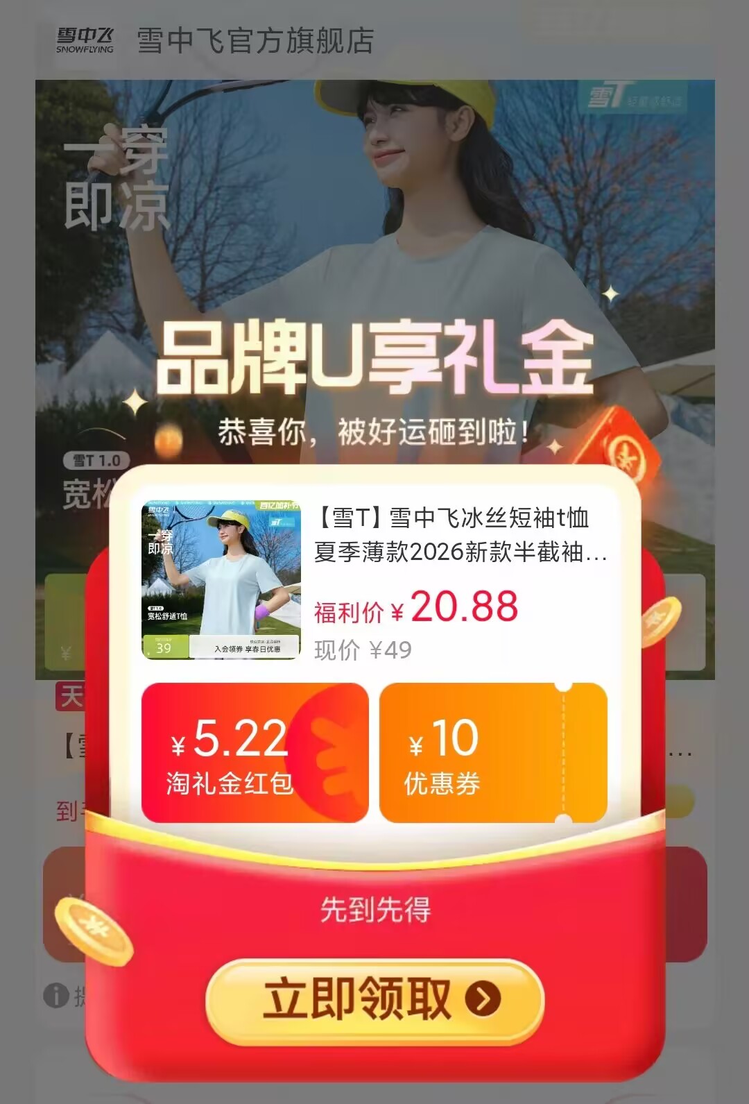 雪中飞官旗冰丝短袖t恤