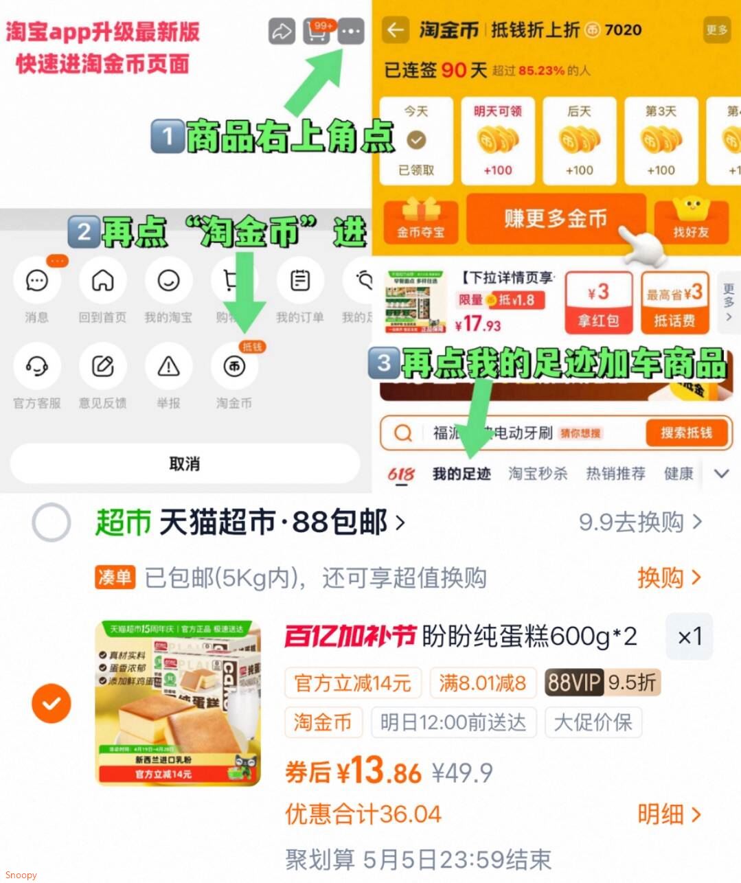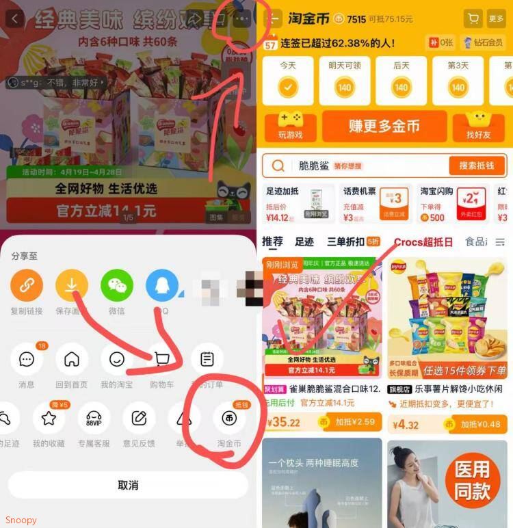 1.商品右上3个点,选淘金币