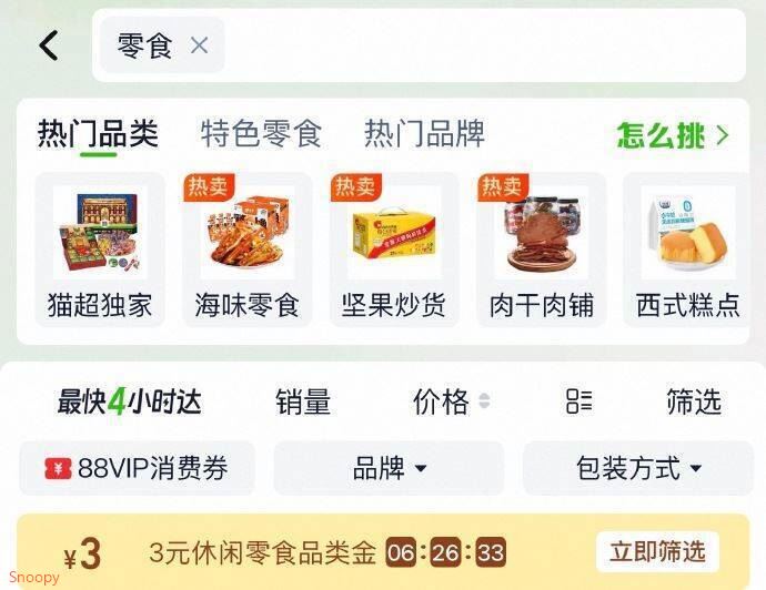 猫超首页搜零食 部分有3卡