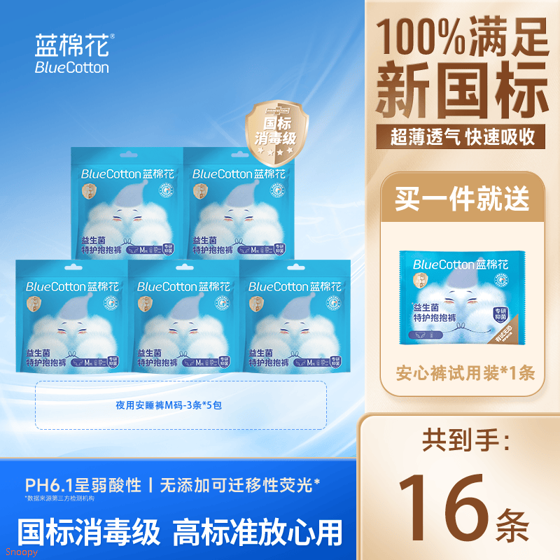 蓝棉花 益生菌安睡裤16条(含赠)