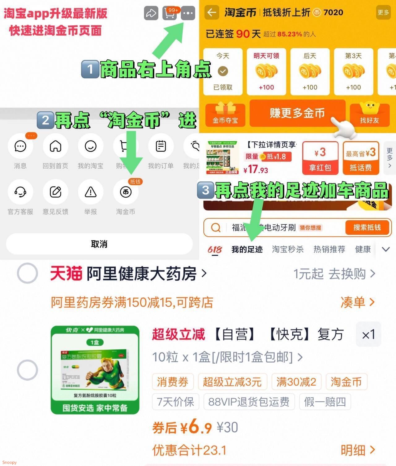 1.下拉详情进淘金币加购1件