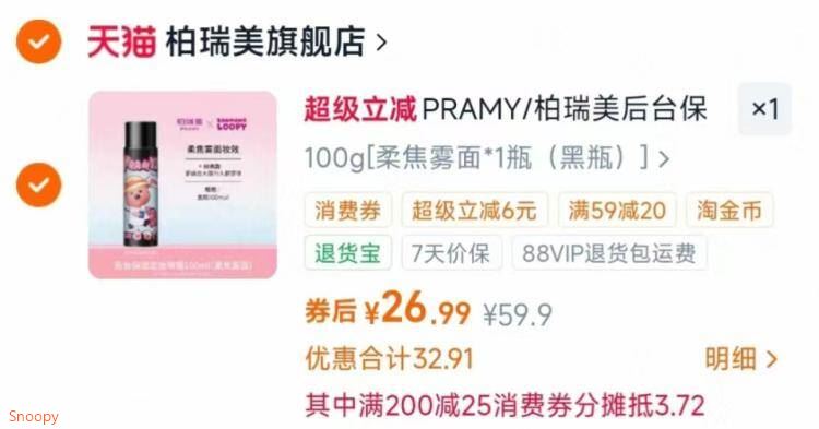 柏瑞美定妆喷雾到手26元