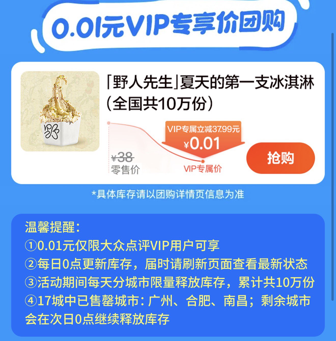 只限点评VIP可抢0.01冰淇淋蜷