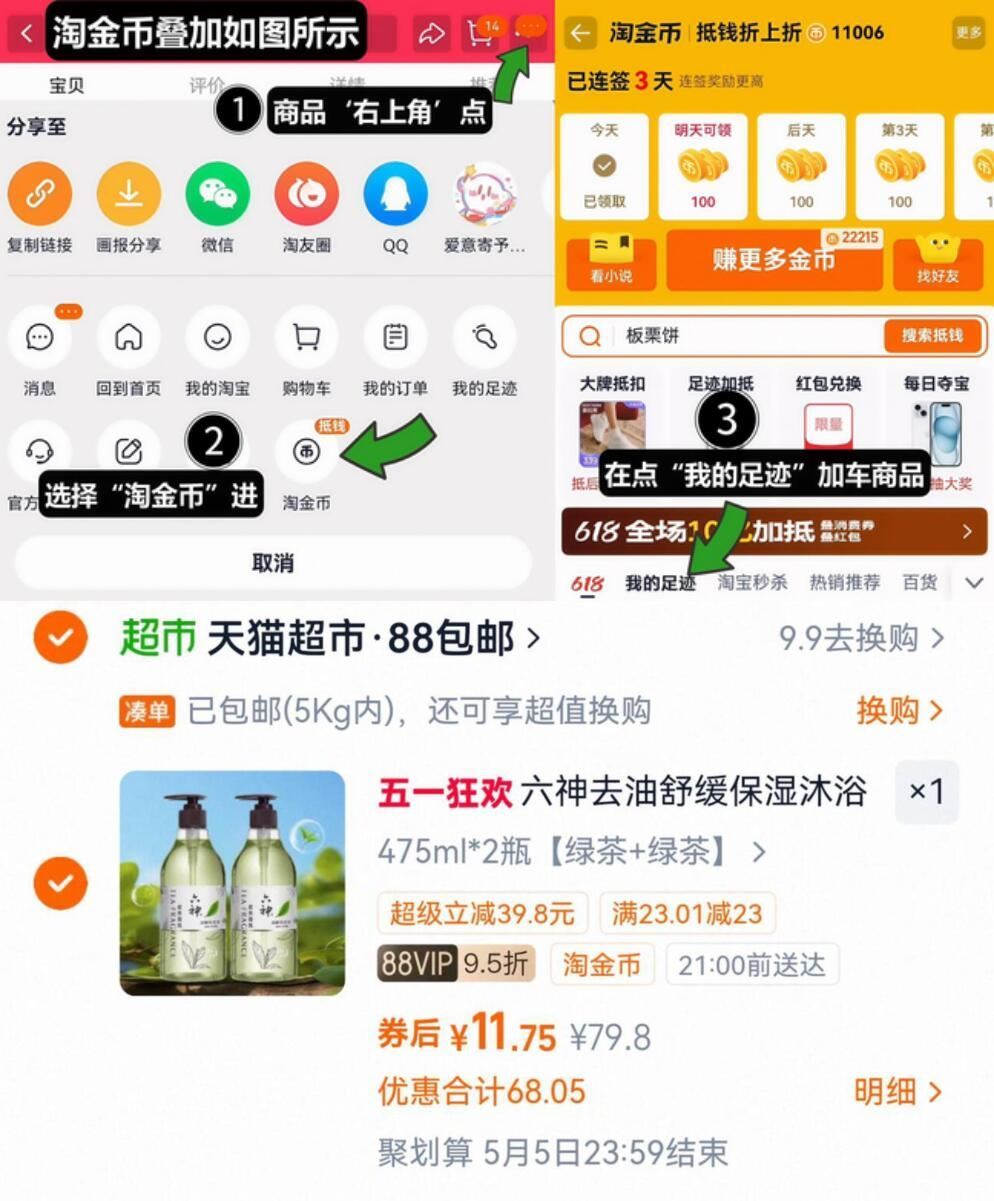①如图点右上角3个点,选淘金币